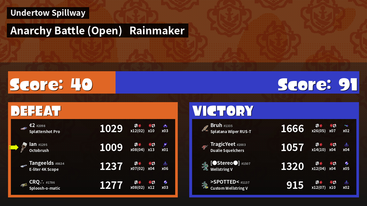 | Medals | #1 Score Booster #1 Splat Assister #1 Rainmaker Stopper | ||