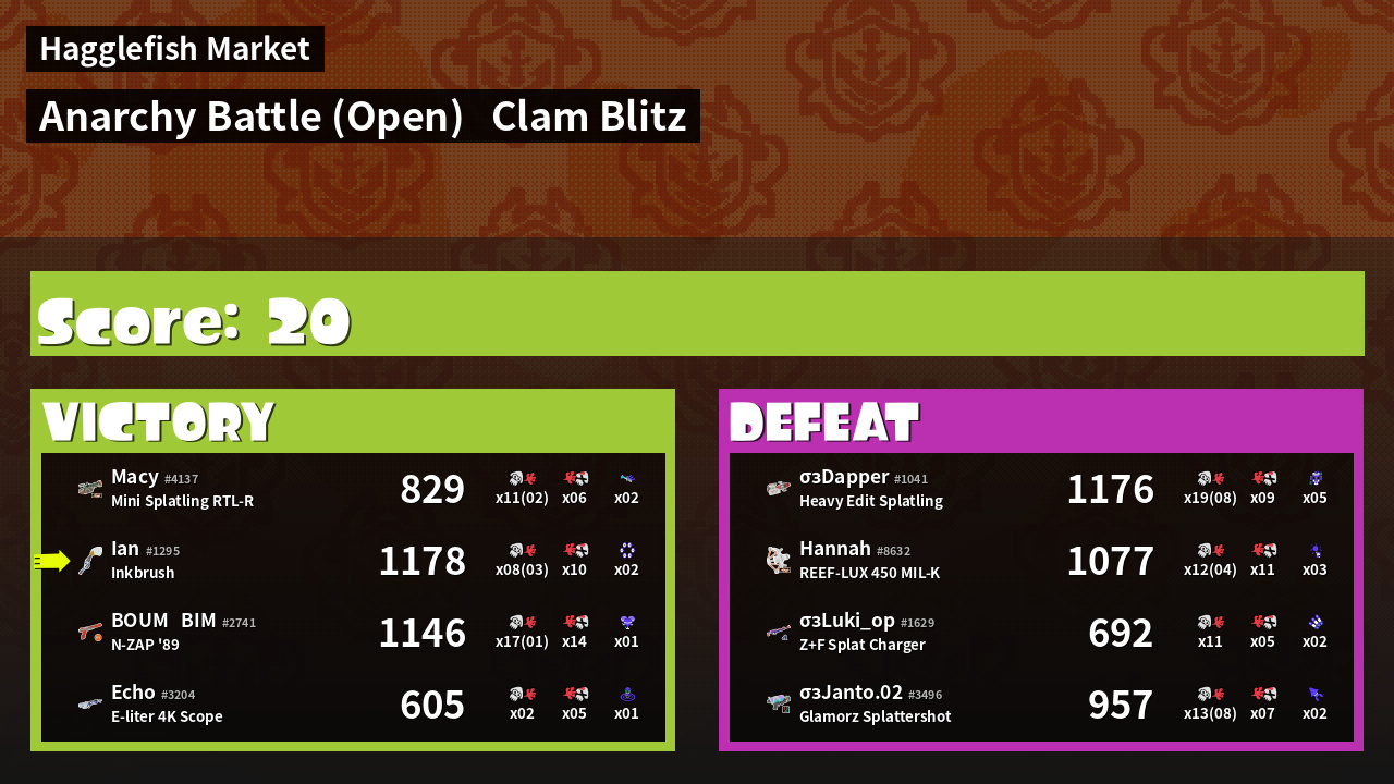 | Mode | Clam Blitz - Anarchy Battle (Open) | ||