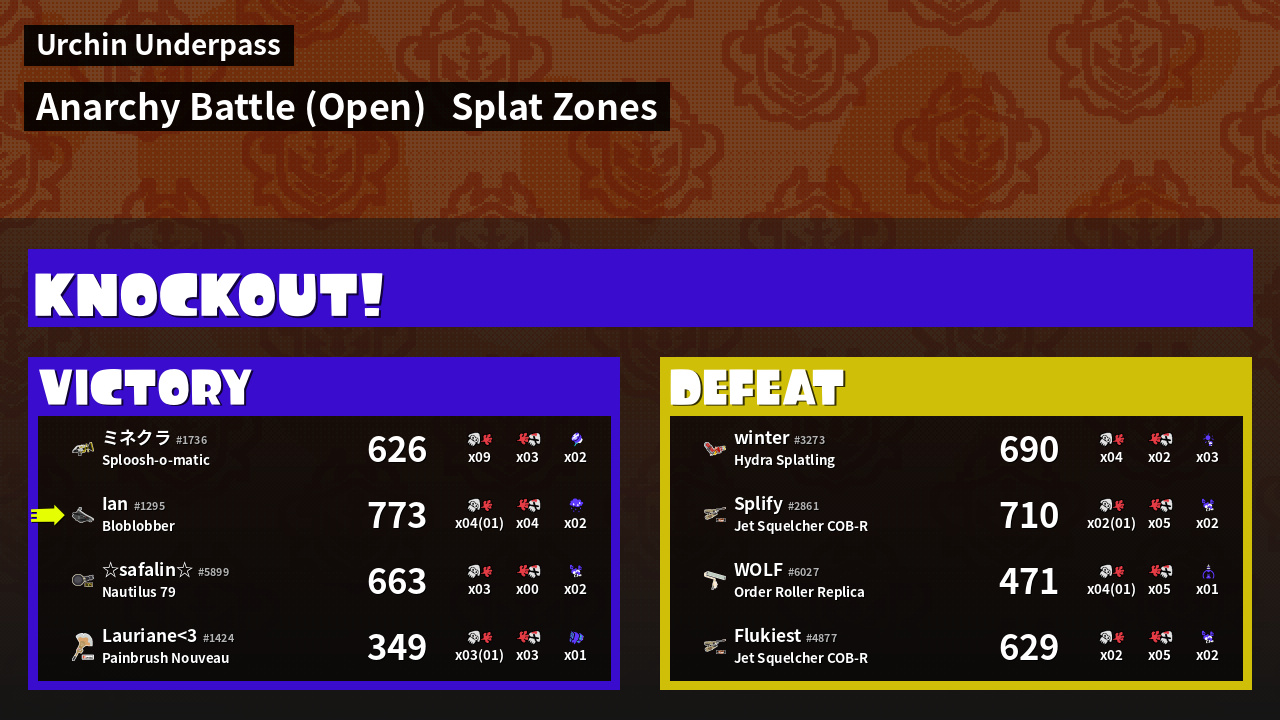 | Mode | Splat Zones - Anarchy Battle (Open) | ||