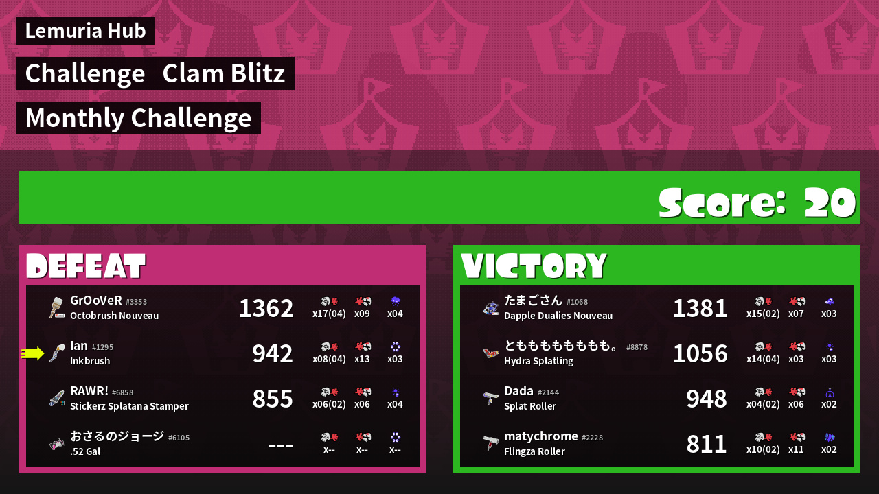 | Medals | #1 Splat Assister #1 Ink Consumer #1 Killer Wail 5.1 User | ||