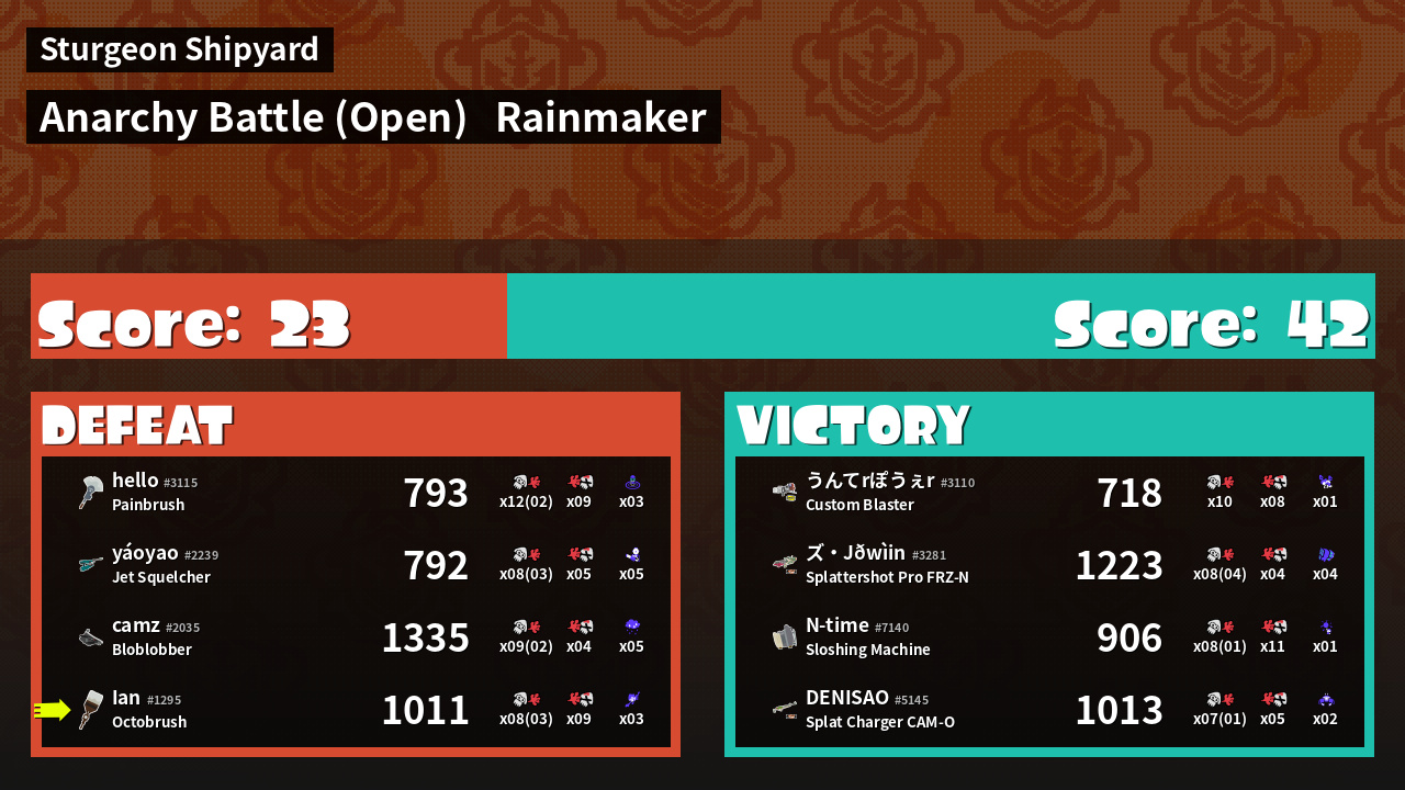 | Mode | Rainmaker - Anarchy Battle (Open) | ||