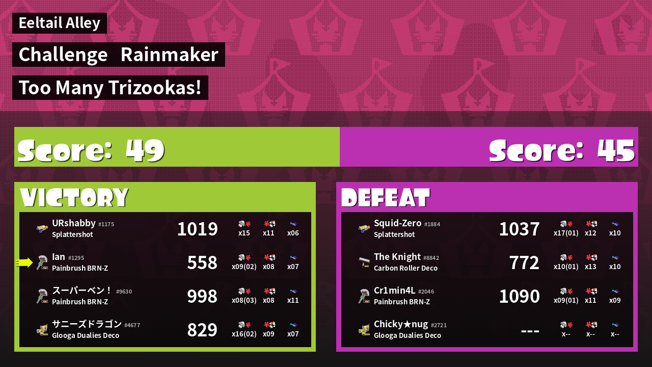 | Challenge | Too Many Trizookas! A high-powered Trizooka battle! | ||