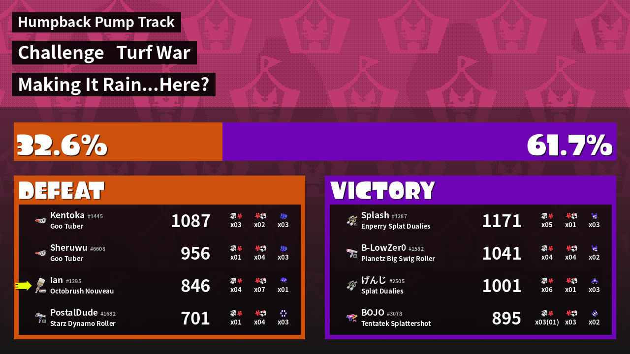 | Medals | #1 Overall Splatter #1 Popular Target #1 Enemy Splatter | ||