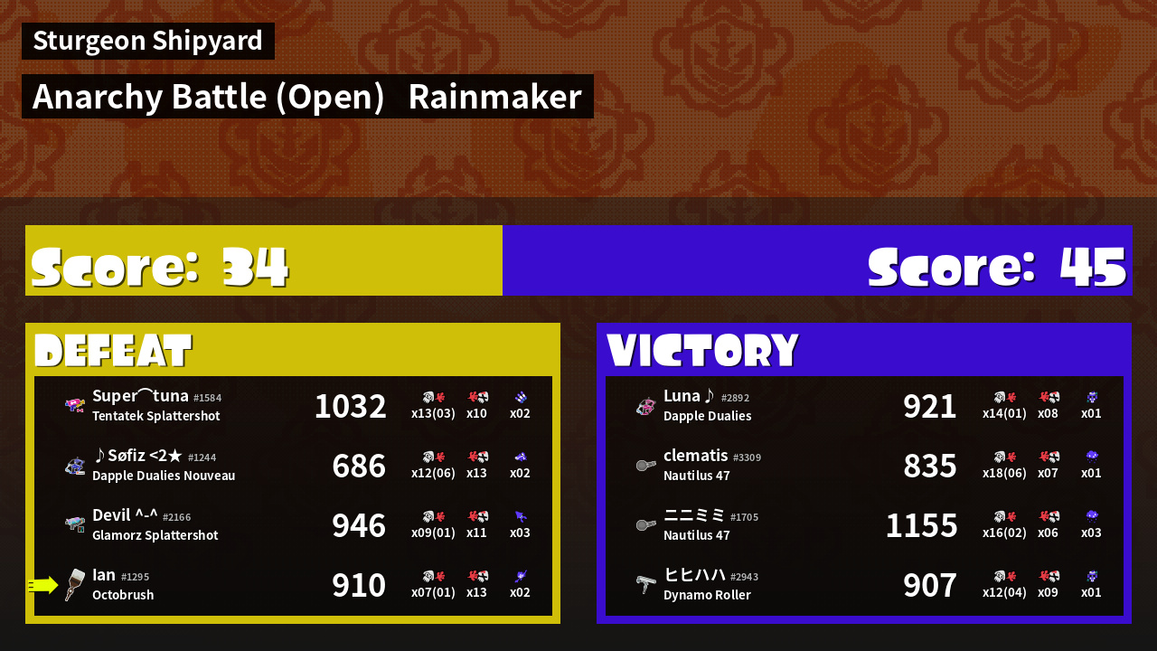 | Mode | Rainmaker - Anarchy Battle (Open) | ||