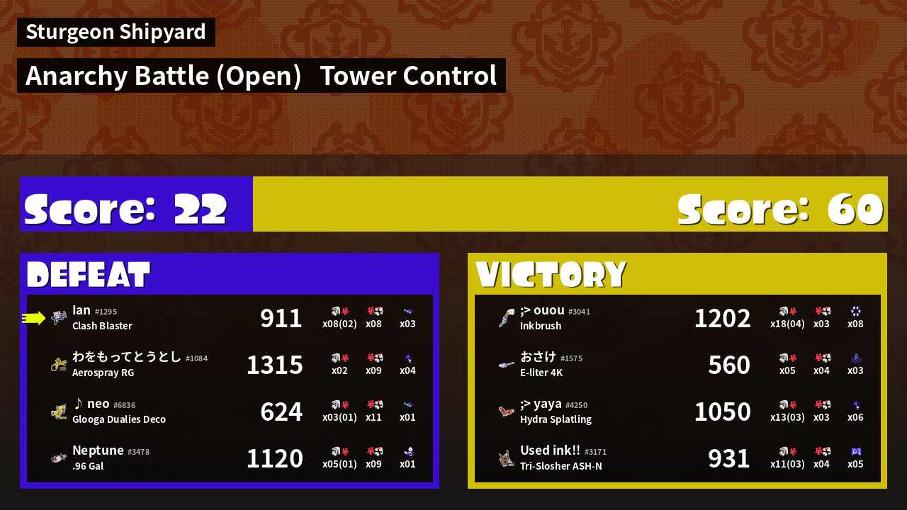 | Mode | Tower Control - Anarchy Battle (Open) | ||
