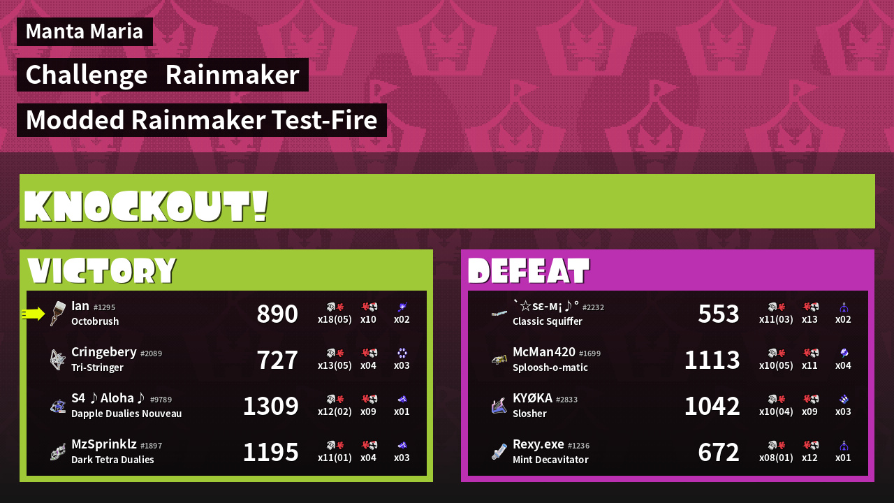 Kills / Deaths | 13 + 5 / 10 > Kill Ratio: 1.30 | ||