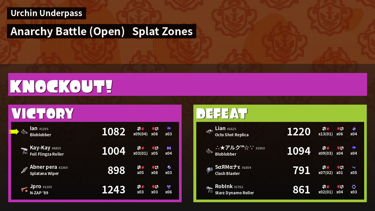 | Mode | Splat Zones - Anarchy Battle (Open) | ||