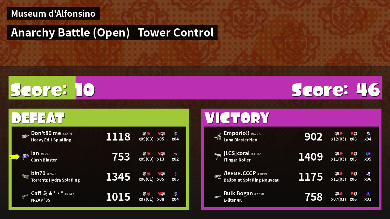 | Mode | Tower Control - Anarchy Battle (Open) | ||