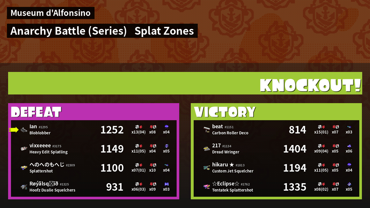 | Medals | #1 Overall Splatter #1 Splat Zone Inker #1 Splat Zone Guard | ||