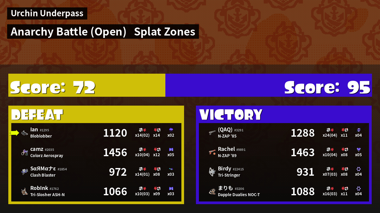 | Mode | Splat Zones - Anarchy Battle (Open) | ||