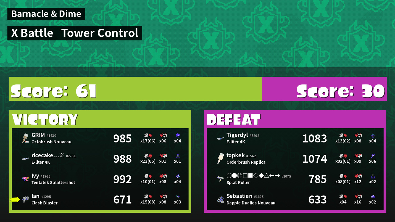 | Medals | #1 Splat Assister #1 Checkpoint Breaker | ||