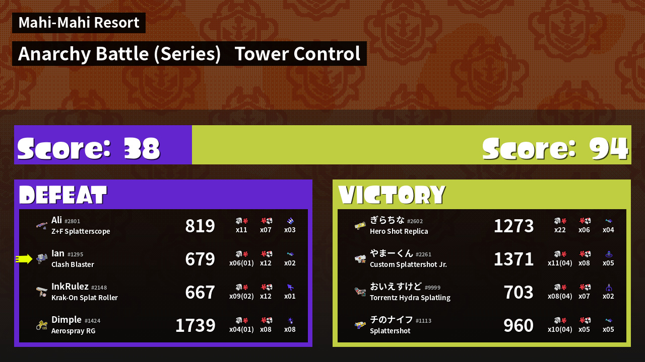 | Mode | Tower Control - Anarchy Battle (Series) | ||