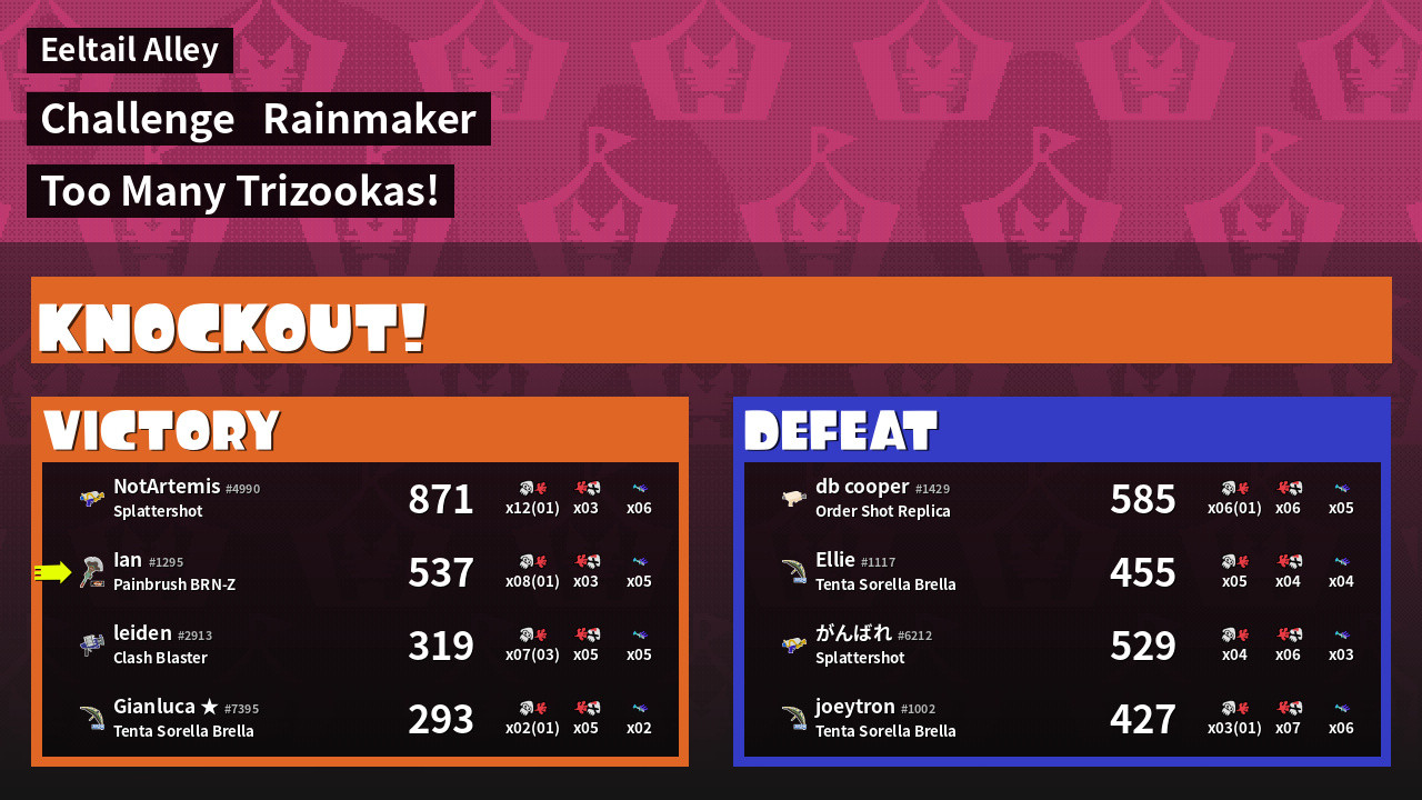 | Challenge | Too Many Trizookas! A high-powered Trizooka battle! | ||