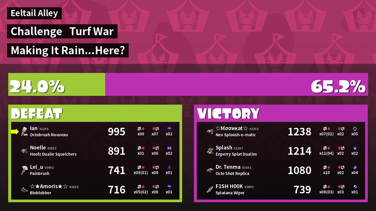 | Medals | #1 Turf Inker #1 Enemy-Base Inker #1 Super Jump Spot | ||