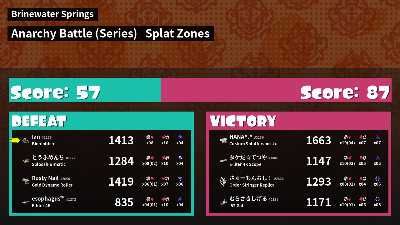 | Mode | Splat Zones - Anarchy Battle (Series) | ||