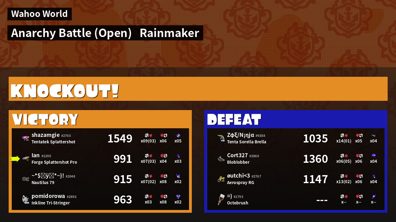 | Mode | Rainmaker - Anarchy Battle (Open) | ||