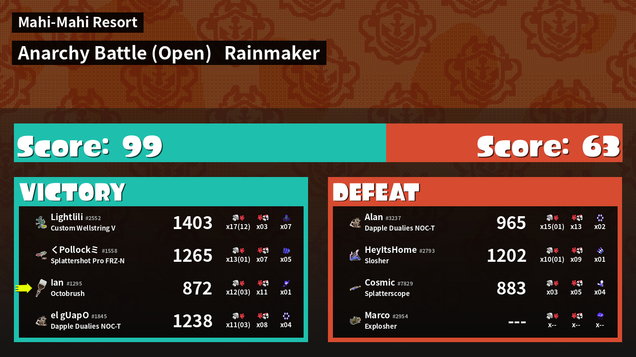 | Mode | Rainmaker - Anarchy Battle (Open) | ||