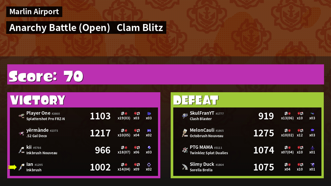 | Mode | Clam Blitz - Anarchy Battle (Open) | ||