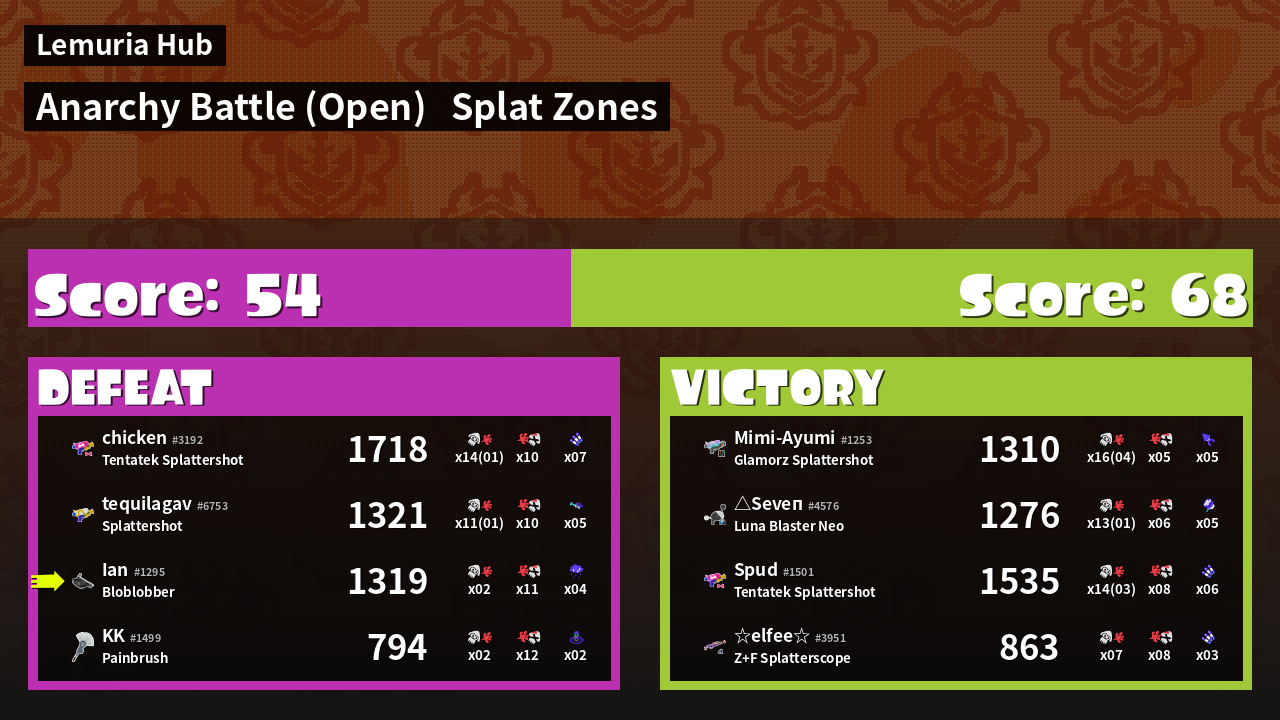 | Mode | Splat Zones - Anarchy Battle (Open) | ||