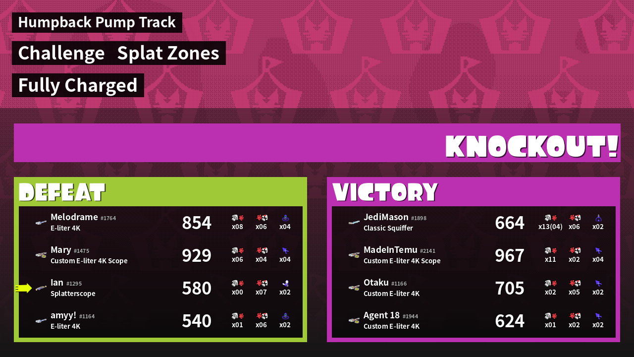 | Medals | #1 Splat Zone Inker #1 Ink Consumer #2 Popular Target | ||