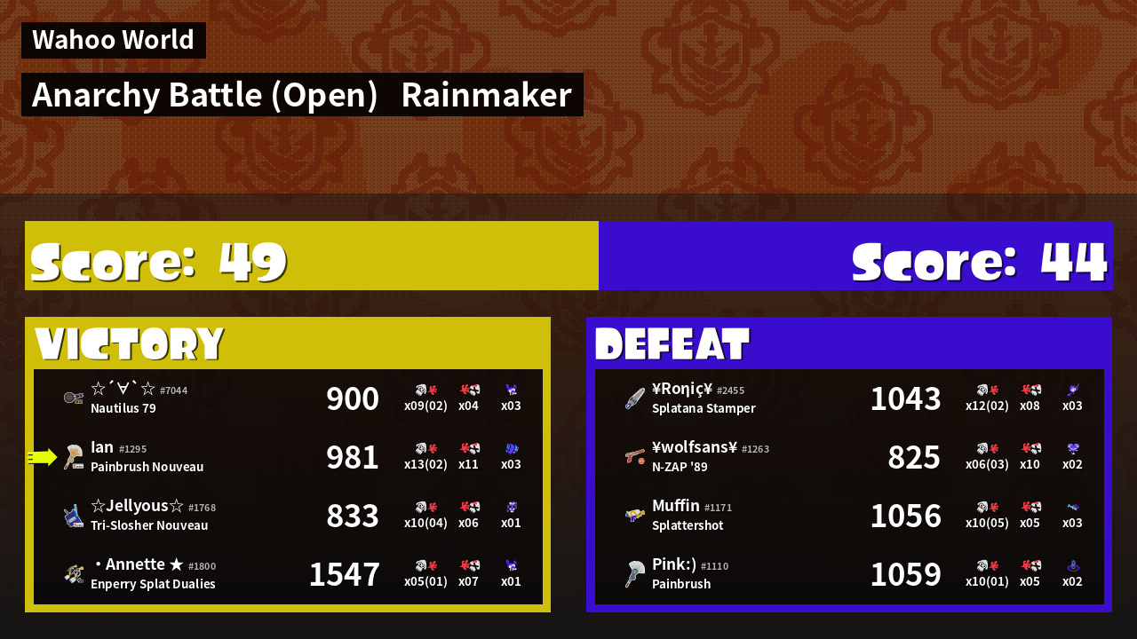 | Mode | Rainmaker - Anarchy Battle (Open) | ||