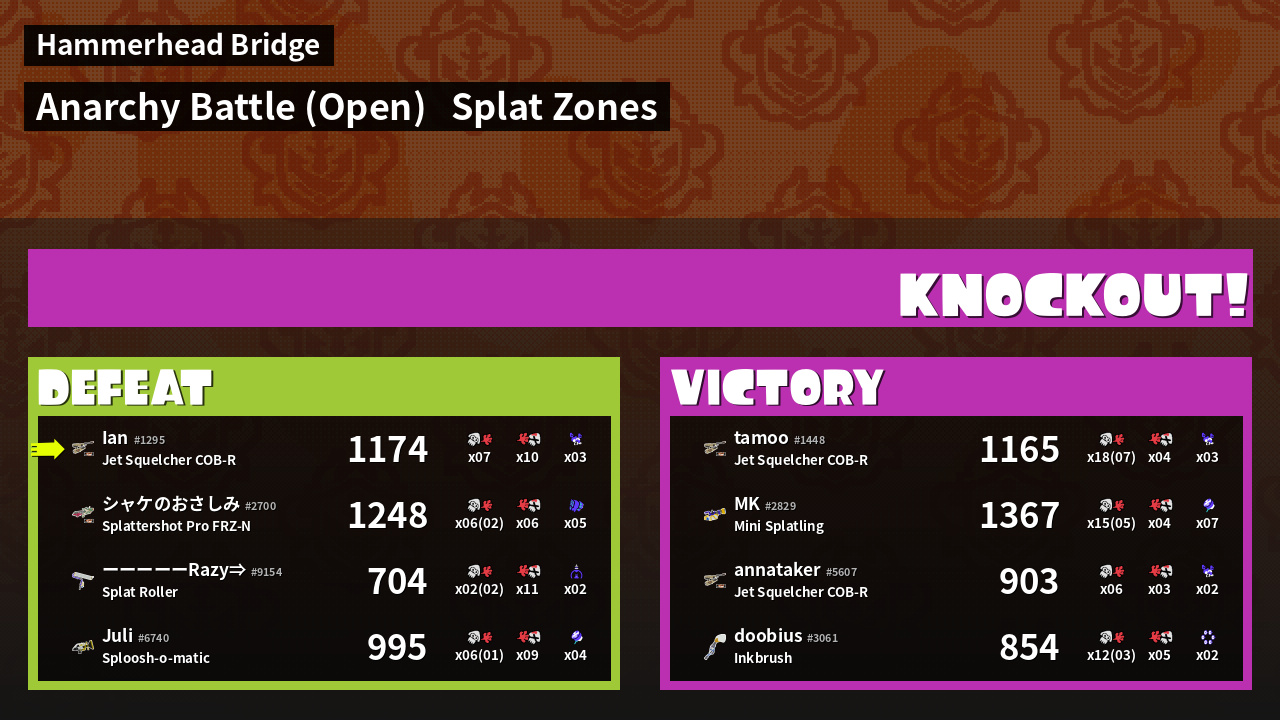 Name | Weapon | Inked | ![]() |