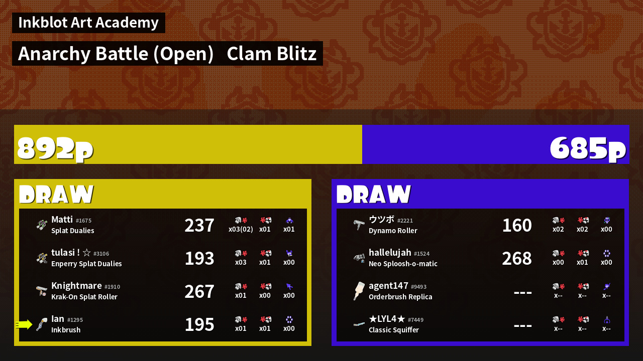 | Mode | Clam Blitz - Anarchy Battle (Open) | ||