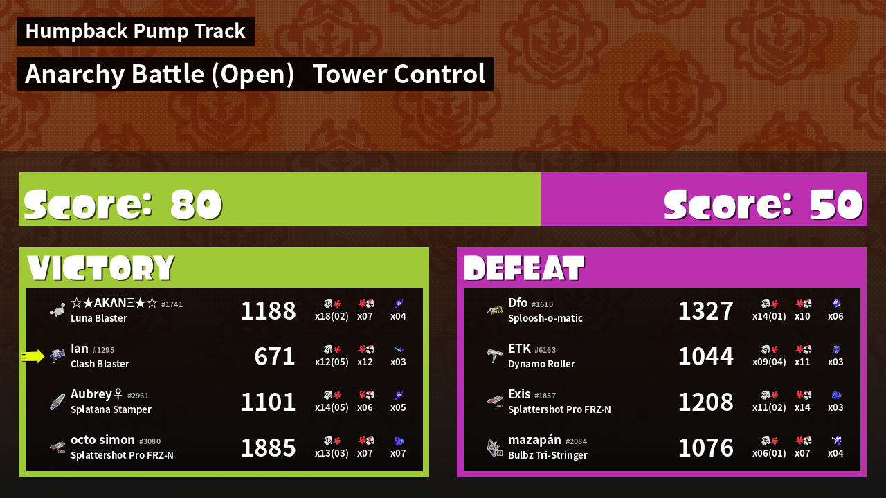 | Mode | Tower Control - Anarchy Battle (Open) | ||