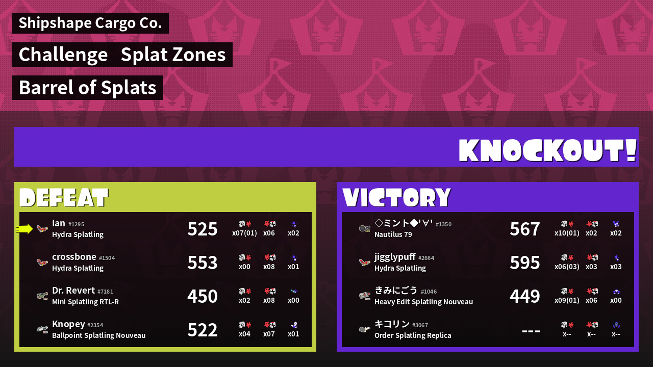 Challenge | Barrel of Splats Muster as much firepower as you can<br />in this battle of the splatlings! | ||