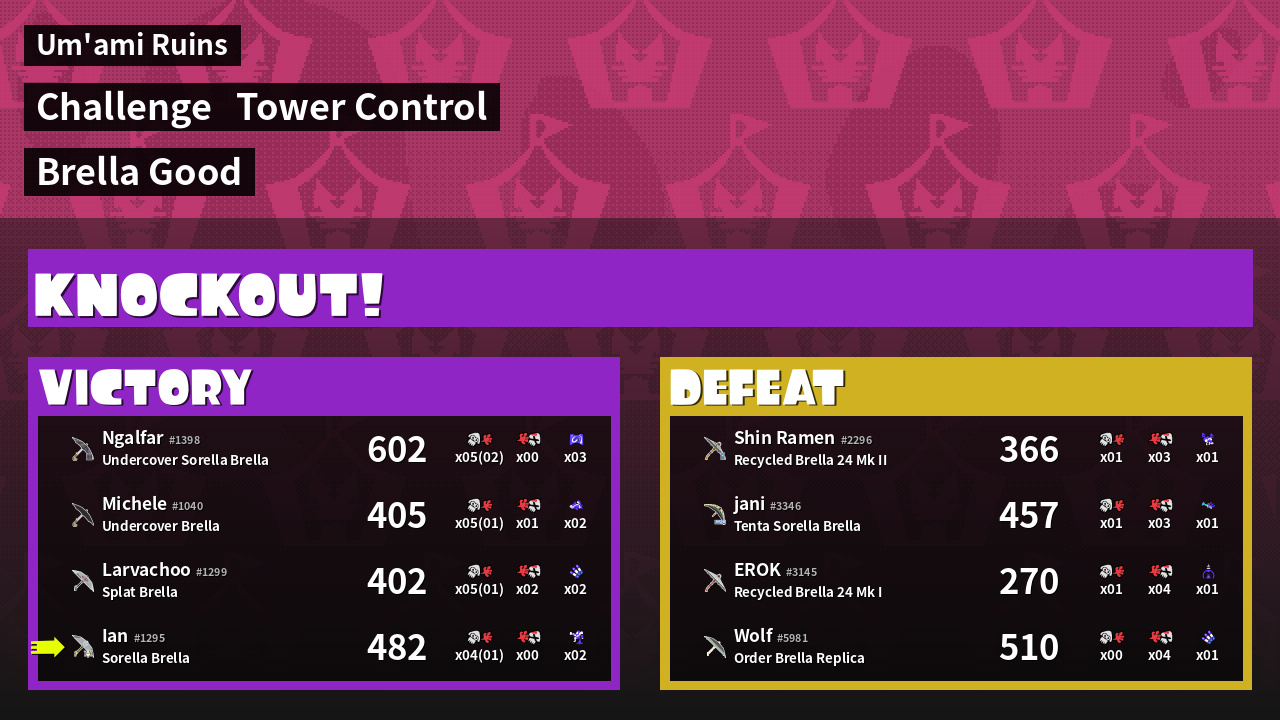 | Medals | #1 Tower Stopper #2 Turf Inker #2 Splat Assister | ||
