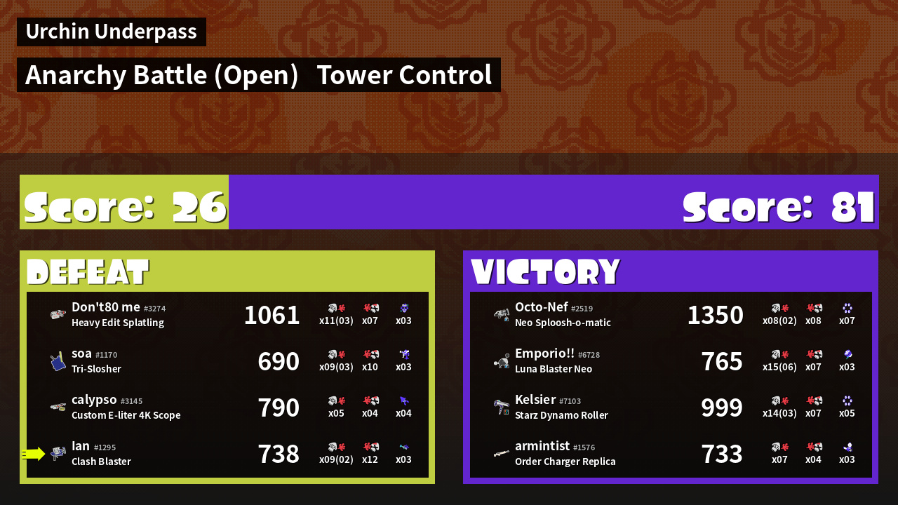 | Mode | Tower Control - Anarchy Battle (Open) | ||