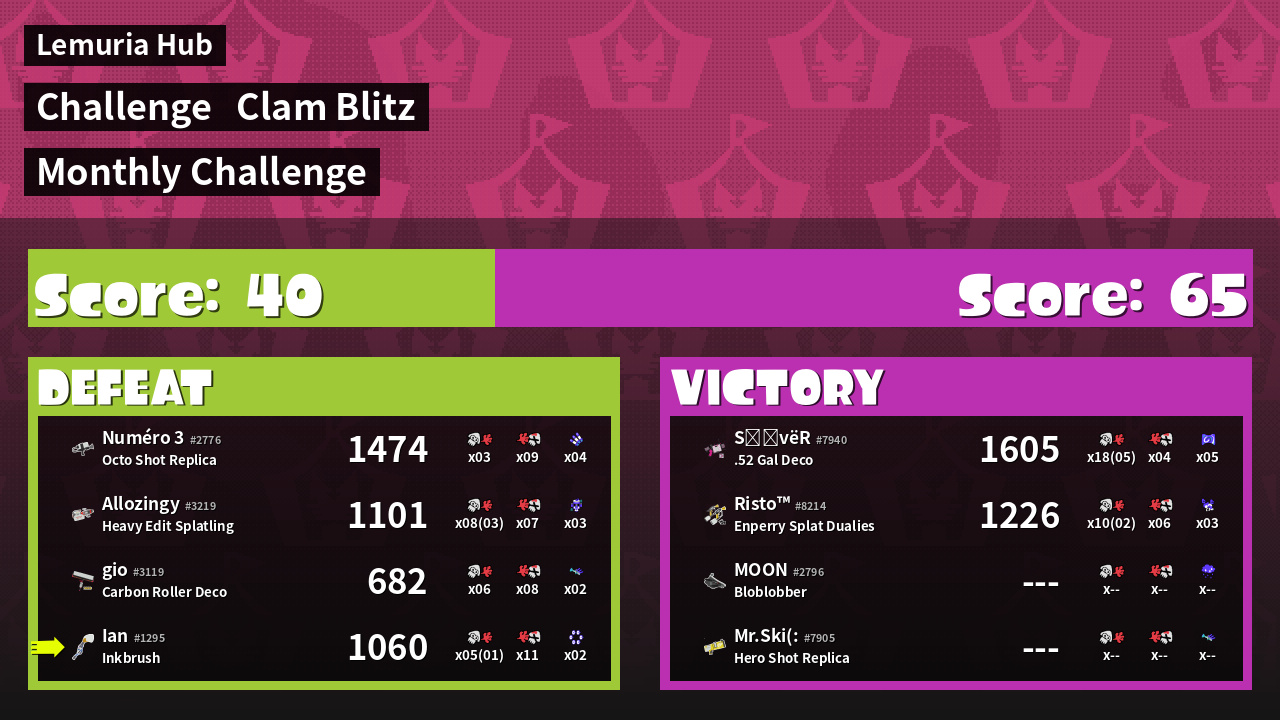 | Medals | #1 Ink Consumer First Splat! #1 Killer Wail 5.1 User | ||