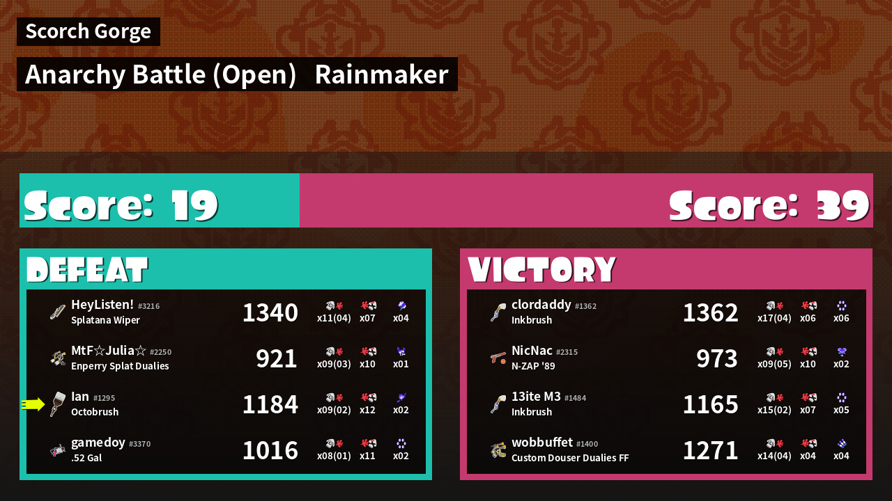 | Mode | Rainmaker - Anarchy Battle (Open) | ||