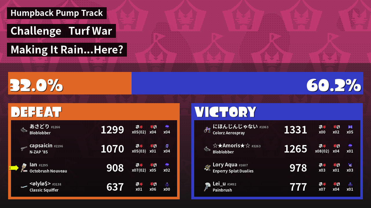 | Mode | Turf War - Challenge | ||