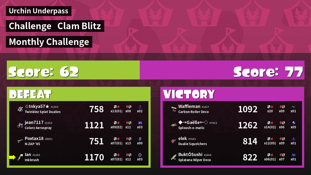 Kills / Deaths | 6 + 1 / 12 < Kill Ratio: 0.50 | ||