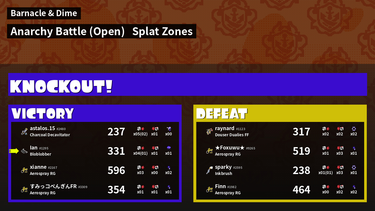| Mode | Splat Zones - Anarchy Battle (Open) | ||