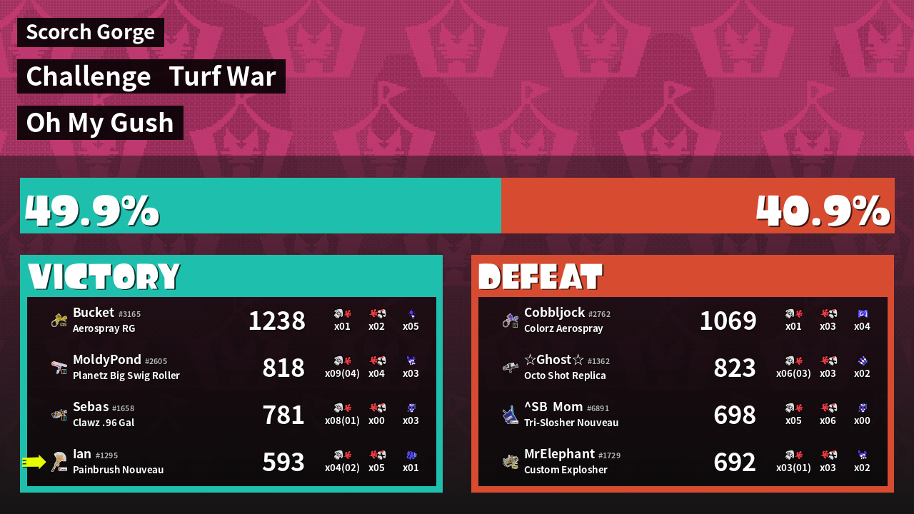 | Medals | #1 Home-Base Inker #2 Splat Assister | ||