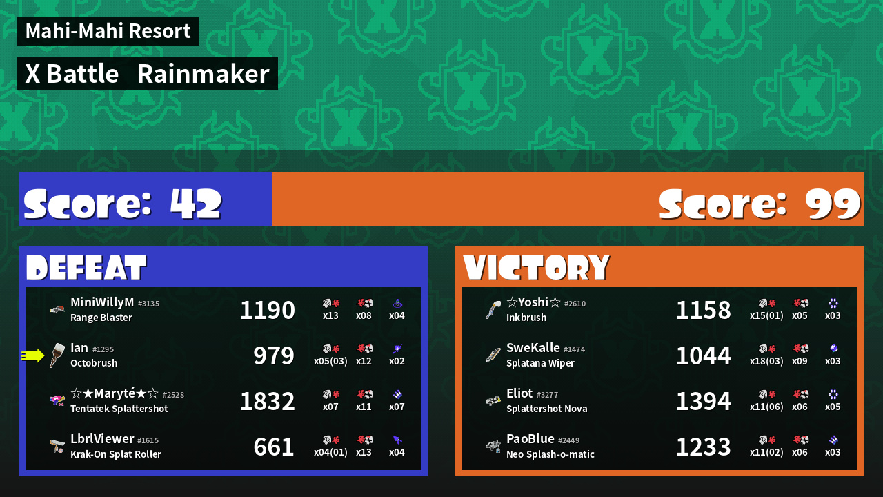 Name | Weapon | X | Inked | ![]() |