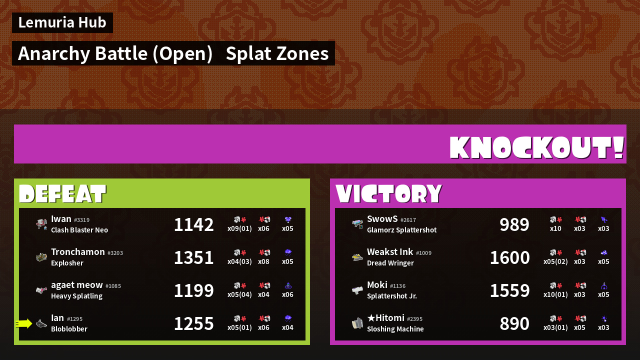 | Mode | Splat Zones - Anarchy Battle (Open) | ||