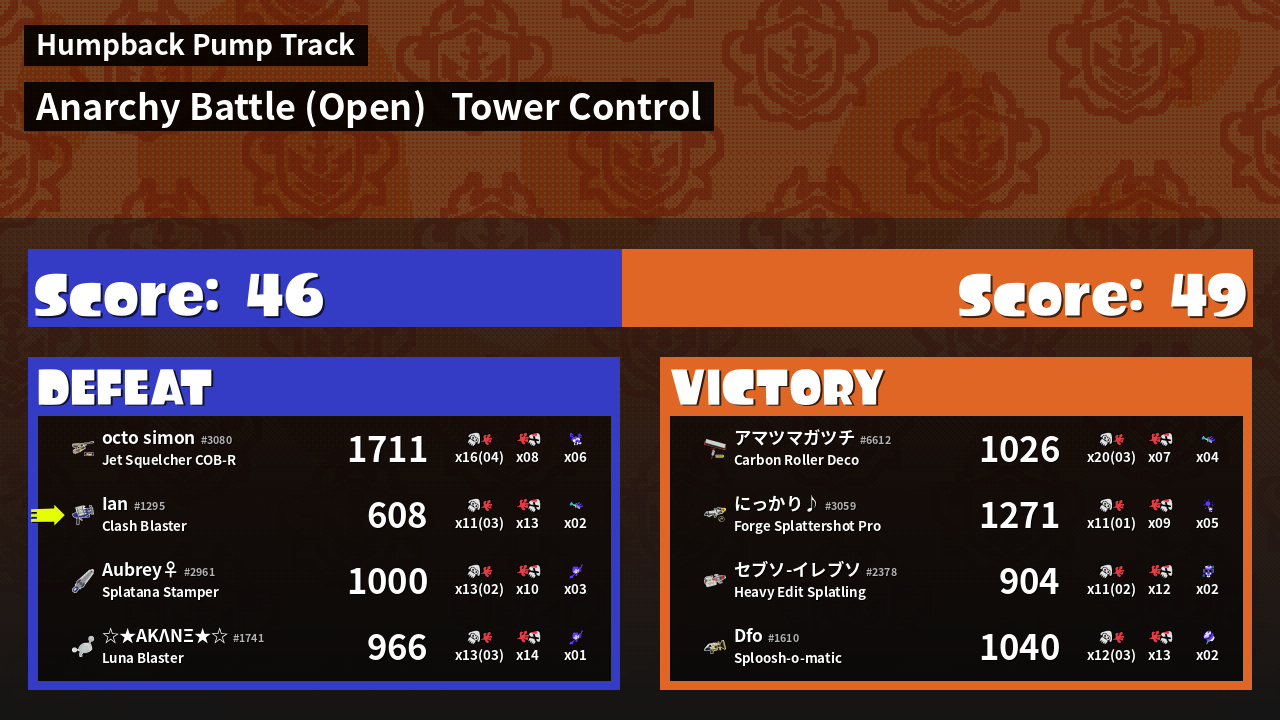 | Mode | Tower Control - Anarchy Battle (Open) | ||