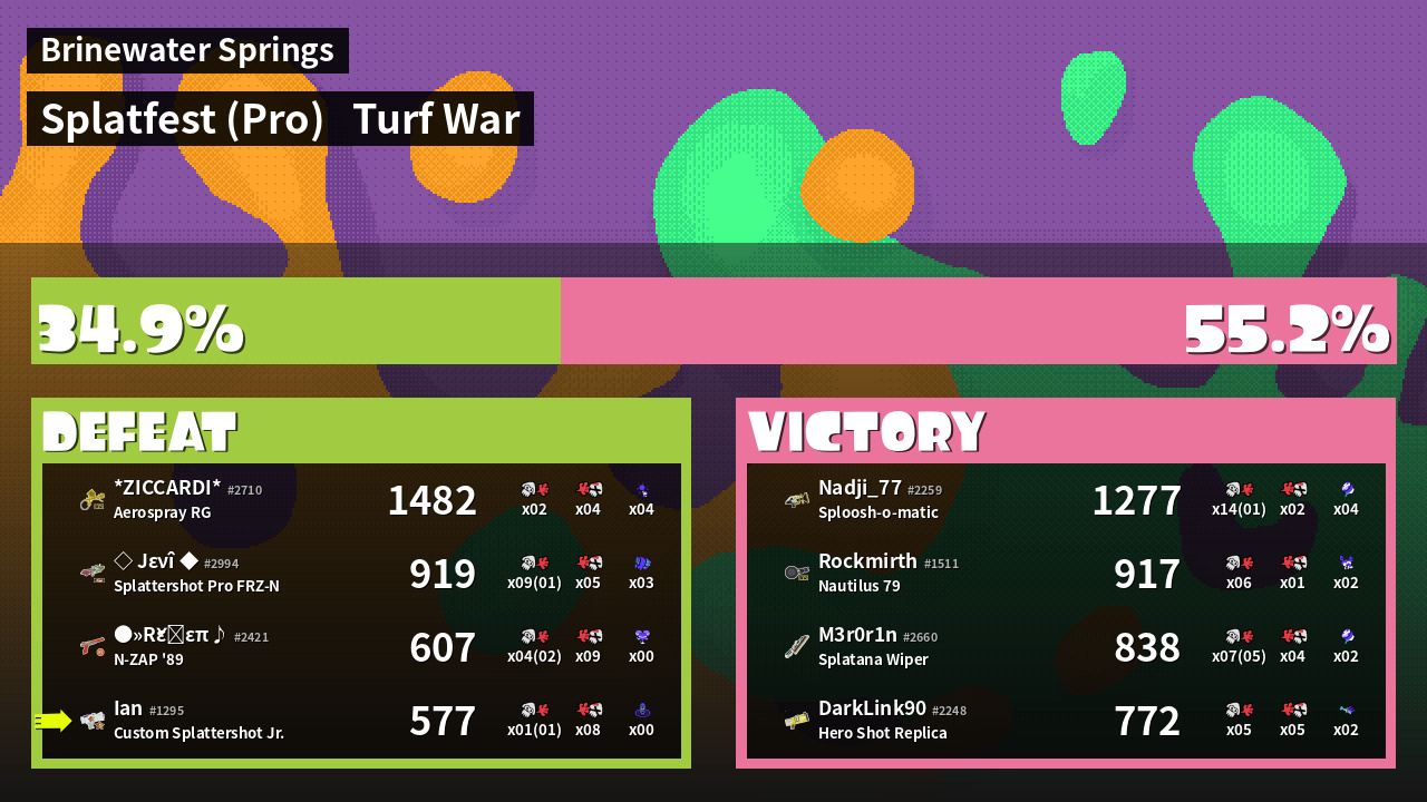| Mode | Turf War - Splatfest (Pro) | ||