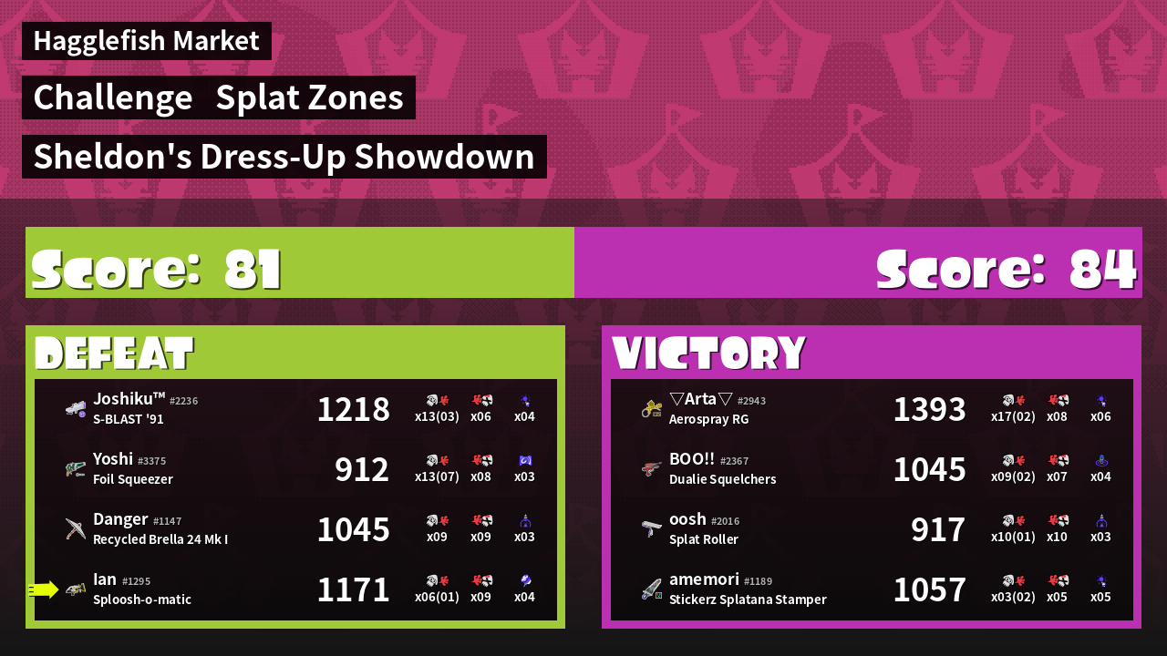 | Weapon | Sploosh-o-matic ( Curling Bomb / Ultra Stamp) | ||