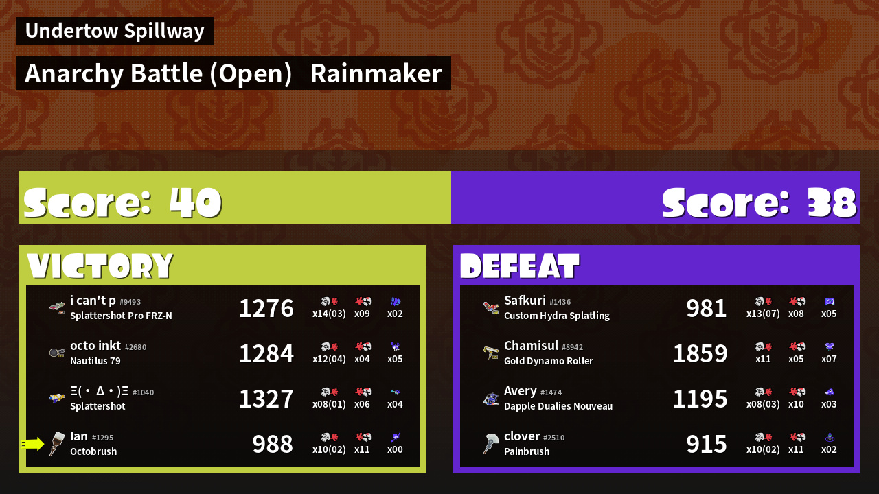 | Mode | Rainmaker - Anarchy Battle (Open) | ||