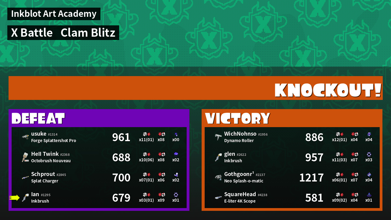 | Weapon | Inkbrush ( Splat Bomb / Killer Wail 5.1) | ||