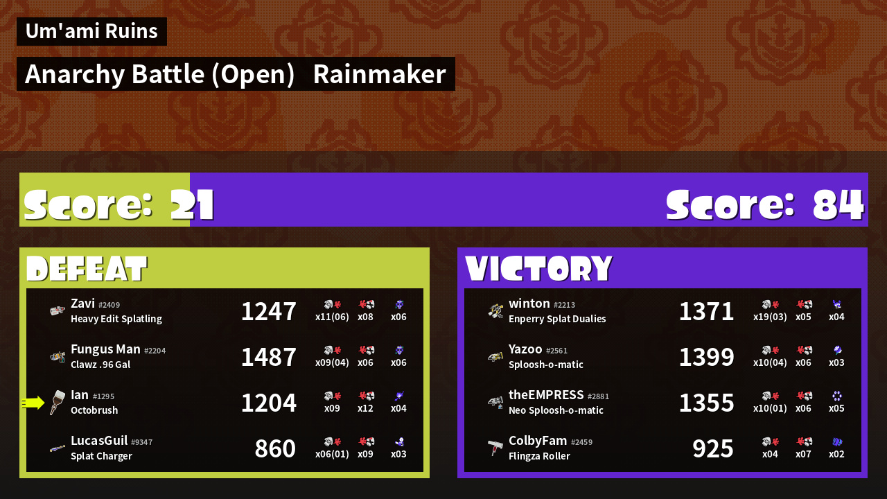 | Mode | Rainmaker - Anarchy Battle (Open) | ||