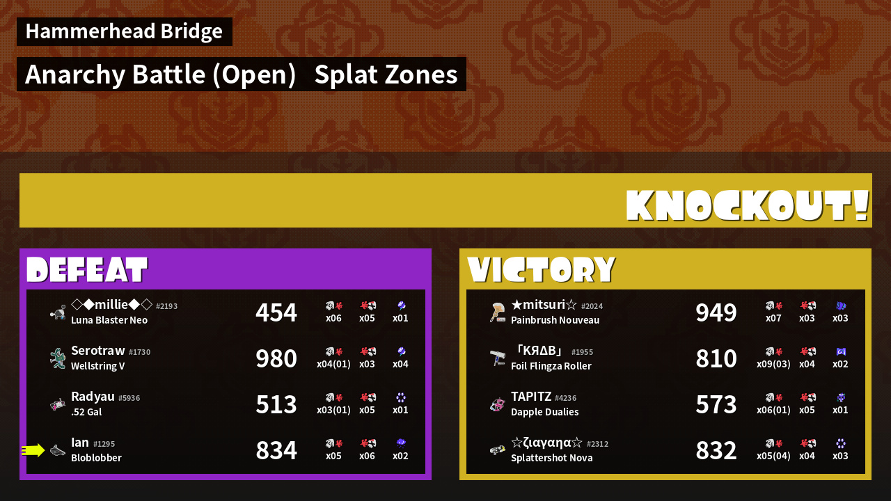| Mode | Splat Zones - Anarchy Battle (Open) | ||