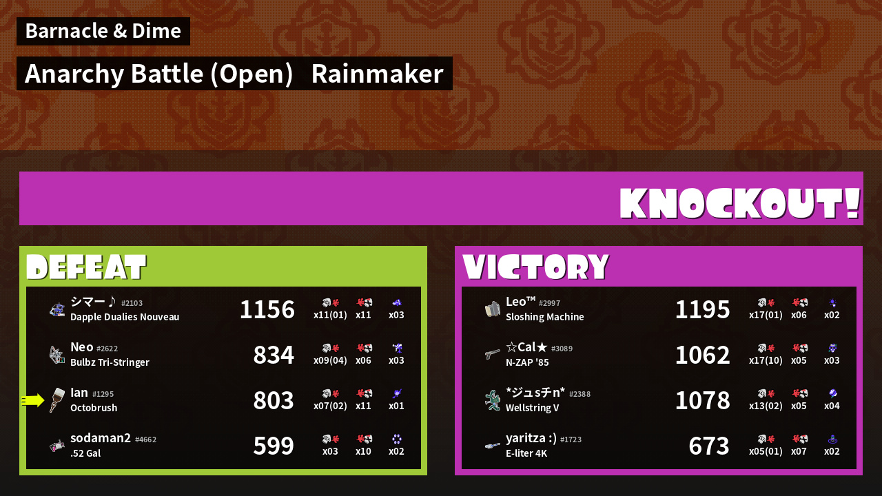 | Mode | Rainmaker - Anarchy Battle (Open) | ||