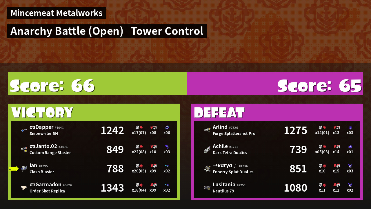 | Mode | Tower Control - Anarchy Battle (Open) | ||