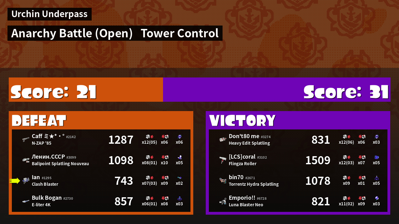 | Mode | Tower Control - Anarchy Battle (Open) | ||