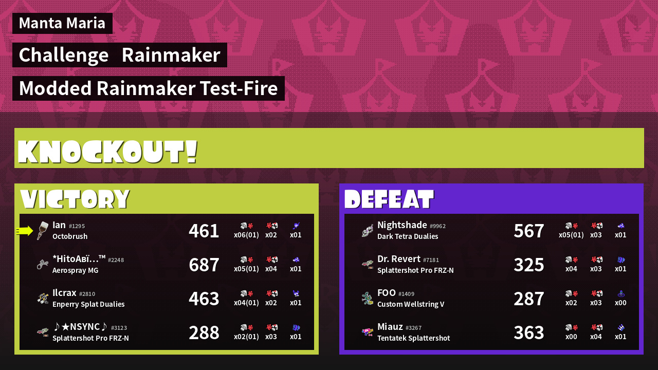 Kills / Deaths | 5 + 1 / 2 > Kill Ratio: 2.50 | ||